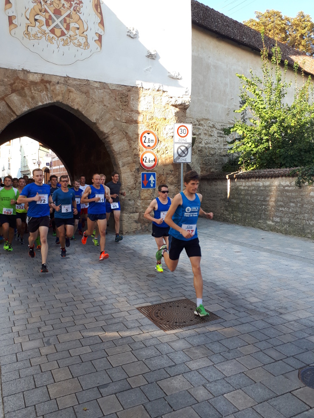 Das Gewitter vom Vortag sorgte für frische Luft bei angenehmen 19° Celsius, also beste Voraussetzungen für die Sportler. Der Kurs führte wie gewohnt über zwei Runden um und durch die historische Altstadt mit Start und Ziel am Marktplatz, der mit zahlreichen Zuschauern gefüllt war. Insgesamt rund 280 Läufer sorgten für einen neuen Teilnehmerrekord, so dass sich der Oettinger Stadtlauf inzwischen zu einer der größten Laufveranstaltungen der Region entwickelt hat.