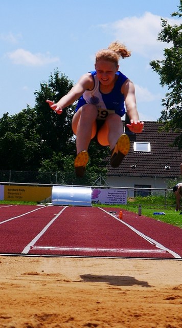 Eine Woche nach dem Mehrkampf richtete der Verein Auerbach-Streitheim bereits den nächsten Wettkampf aus - diesmal die Einzelmeisterschaften für Jugendliche und Erwachsene. An einem Tag OHNE Regen war sicherlich Anna Grasse vom TSV Nördlingen die auffälligste Athletin.