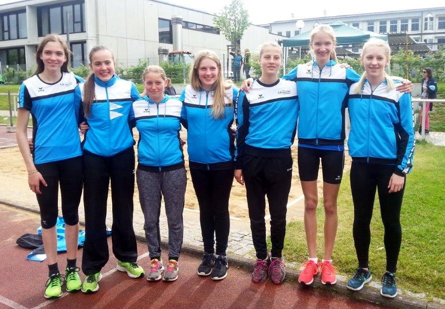 In der Altersklasse W15 entschied sich Mia Bergmiller heuer für den Block Wurf, nachdem sie bereits letztes Jahr im Block Lauf bereits den Titel erreicht hatte. Gleich mit der ersten Disziplin, dem 80m-Hürdenlauf, setzte sie sich mit annähernd Bestleistung von 13,07 Sekunden an die Spitze des Teilnehmerfeldes. Nach persönlichen Bestleistungen im Kugelstoßen (9,74 Meter) und 100 Metern (13,36 Sekunden) war ihr der Sieg nicht mehr zu nehmen. Mit einer Gesamtpunktezahl von 2440 Zählern, verfehlte sie nur knapp die erforderliche Qualifikationsleistung von 2475 Punkten für die deutschen Meisterschaften. Zusammen mit Pia Häselhoff (3. Platz Block Sprung), Marion Kleinle (3. Platz Block Wurf), Jana van Noord, Tamara Feder, Paula Nägler und Julia Vogtmann zeigten die Mädels eine geschlossene Gesamtleistung. Für den Titel in der  Mannschaftswertung fehlten dann  mit 11.238 Punkten nur knapp 100 Punkte zum Sieg.  Am Ende konnten sie sich mit ihren Trainern über den Vizemeistertitel und das Erreichen der Teilnahme an den Bayerischen Mehrkampfmeisterschaften am 18.06.2017  in Markt Schwaben freuen.