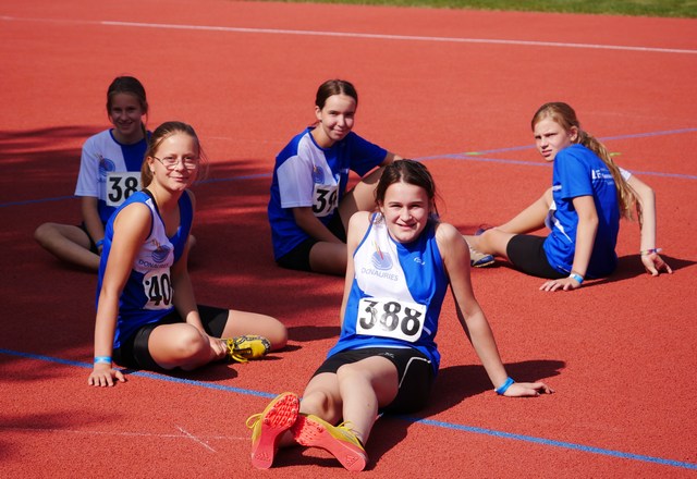Auch die Mönchsdegginger Athleten schlugen kräftig zu. Den Auftakt machten die Mädchen der Altersklasse W12. Sie belegten die kompletten Podestplätze bei den 60m Hürden. Schwäbische Meisterin wurde somit Jessica Rauter (11,32sec.), zweite wurde Jule Beck (12,46sec.) und dritte im Bunde war Ida Köhnlein (12,78sec.). Im Hochsprung konnten alle drei persönliche Bestleistungen erzielen, wobei hier Jessica mit 1,26m ihre Möglichkeiten noch nicht ausschöpfte. Das erste Mal lief Maja Kellner die 100m Hürden der Altersklasse U18. Mit 17,70sec. wurde sie Vizemeisterin. In der gleichen Altersklasse musste sich Julia Vogtmann im Diskuswerfen um ein paar Zentimeter (29,58m) knapp geschlagen geben. Doch im Kugelstoßen ließ sie nichts anbrennen und holte sich mit 11,21m den Titel. Überzeugen konnte auch die  15-jährige Anna Grasse vom TSV Nördlingen. Trotz Start in der höheren Altersklasse U18  wurde sie über 100 Meter in 13,34 sec Dritte und gewann kurz darauf die 400 Meter in hervorragenden 59,73 Sekunden.